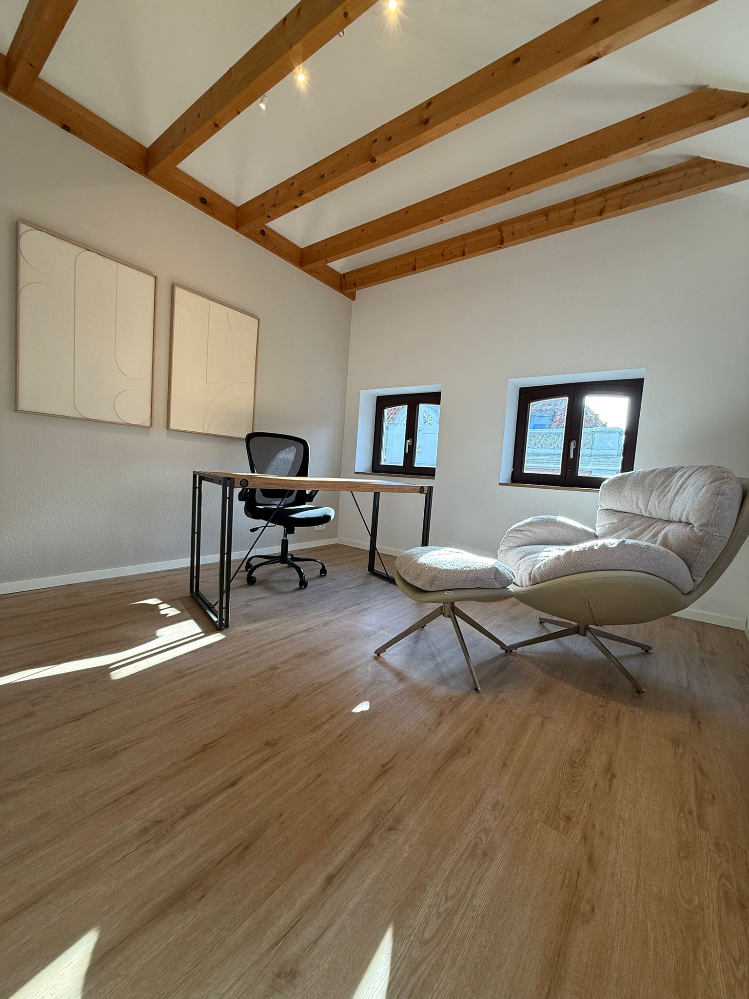 Ein ruhiger, lichtdurchfluteter Workspace für konzentrierte Momente.